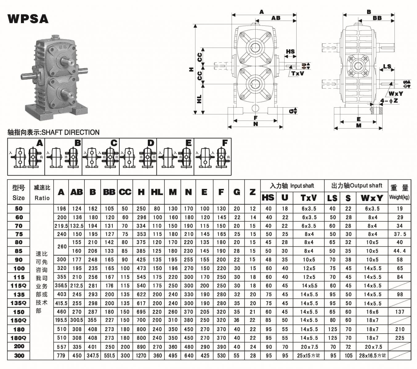 Model Size: WPSA50,60,70,75,80,75,90,100,115,120;
